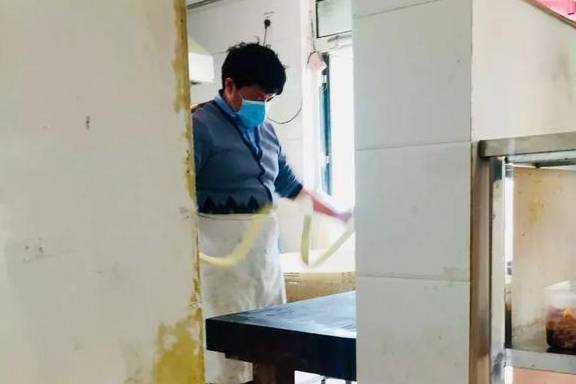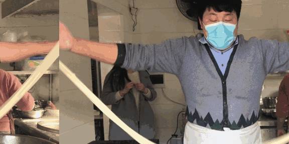 到外面可以清楚地看到师傅摔面、下锅的一系列流程。