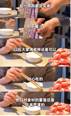 像这样的缺斤少两,消费者能够看的出来,可以找商家协商,少“吃亏”。但火锅店食材少几十克还是很难分辨的,毕竟不能每位消费者都带着一杆秤来保证公平。只有商家自觉,诚信经营。如海底捞,每份食材都是足称的,可以多,不可以少。可以多一些这样的商家,来平衡餐饮消费市场,保障消费者权益。