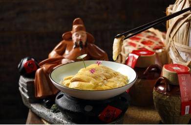 除了食材外,在“黄酒醉万物”“万物皆可醉”的绍兴,以品质与口感兼备的黄酒入菜,将黄酒的酒香与鸡肉的相融,用独特的“味之魂”形成点睛之笔,是制作这道绍兴醉鸡的另一大关键。以绍兴菜头部餐企寻宝记为例,在这道菜中,寻宝记选用了其改进工艺后研发自酿的十年陈酿花雕,不仅口感甜香,而且适于入菜。夹起一小块醉鸡,鸡肉嫩滑入味,鸡皮滑中带脆,淡淡的酒香萦绕在舌尖,为这道风雅美味的名菜更添情致。