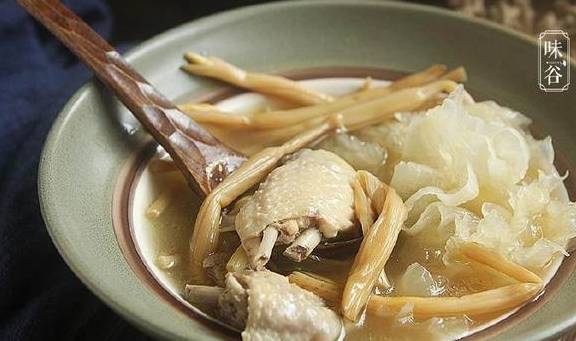 金针银耳黑枣煲鸡汤,“金针”即黄花菜干品,其营养丰富,尤其适合情志不畅、气闷不舒、健忘失眠、神经衰弱者食用。在冬末春初的干燥天或春湿时,配以补脾胃的黑枣、益气的黄芪、滋阴的银耳和鸡肉一起合而为汤,滋阴健脾,益气心神,对预防初春引起的春困春闷很有帮助,男女老少皆宜。