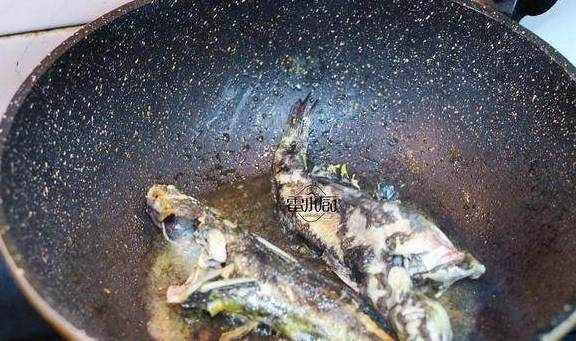 5、倒入煎好的昂刺鱼,加入与菜齐平的水,放生姜一起大火煮开,再改中火慢煮。
