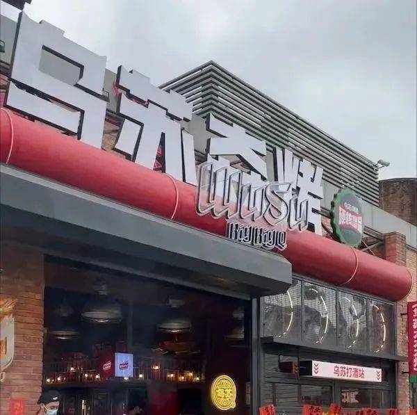 从这家烧烤店的名字来看,乌苏?烤,三个“大”字叠起音同tài,意思为“很大”。