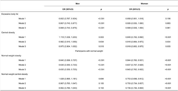 BMI正常的情况下,出现全身及中心性肥胖风险的差异