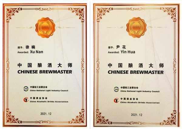 青岛啤酒副总裁兼制造总裁、总酿酒师徐楠,研发中心主任尹花荣获“中国酿酒大师”称号
