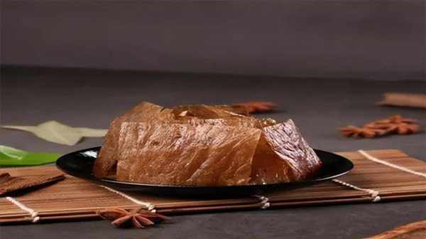 老式灯影牛肉是牛肉薄片佐酒。它比牛肉还薄,比我们平时用来写字的纸稍厚。由于它的厚度很薄,所以能够透光,这对制作灯罩牛肉的师傅提出了很高的要求。