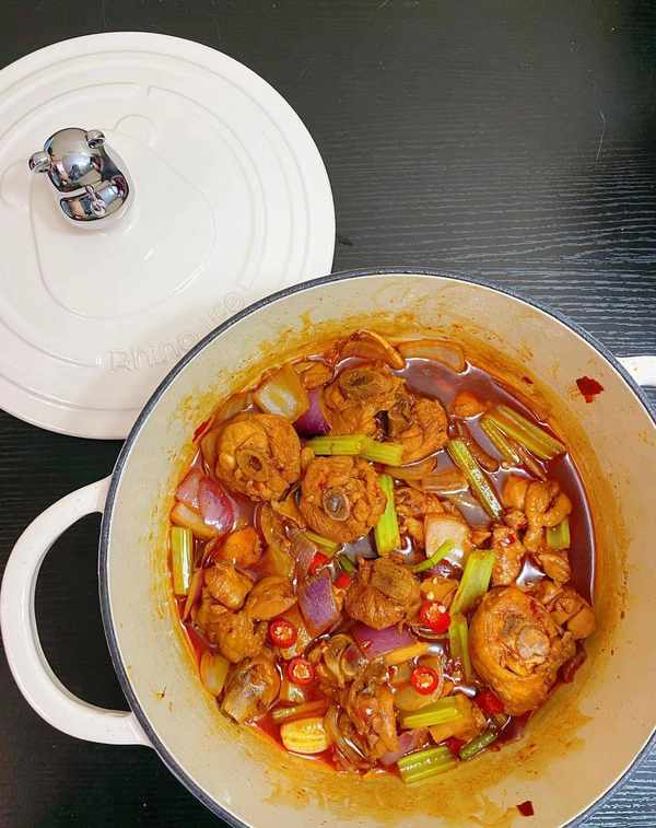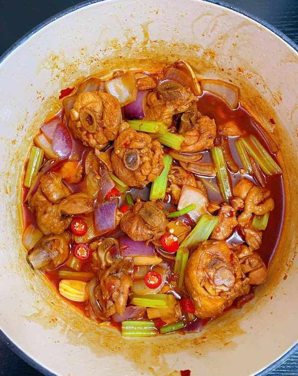 如果家里有啤酒,需要加啤酒,然后加少许盐和冰糖,大火煮熟后,盖上盖子,改小火,继续炖30分钟,最后加入葱和芹菜。煮2分钟,撒上小米辣就可以出锅了!