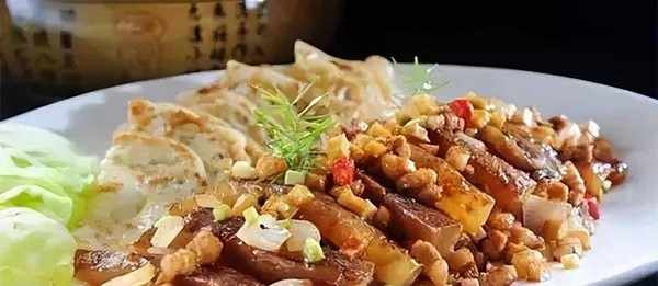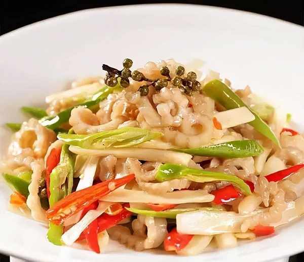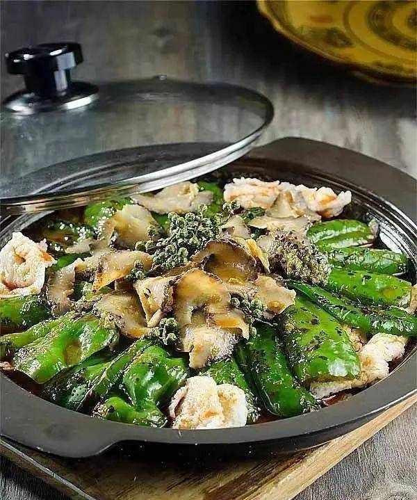1、二刀肉的皮烤好洗净,与切好的姜丝、葱丝一起放入开水锅中煮至断,捞出切成薄片。鲍鱼洗净后切片,然后迅速放入锅中焯水,淋水冷却。2.锅置旺火烧热,加入少许葱油,放入猪肉片炒香,待七鳃鳗呈淡淡的状态时,加入姜片、蒜片和郫县豆瓣,加入料酒和豆豉炒熟后,加入青椒片和鲍鱼片搅拌。最后撒上青蒜苗,搅拌均匀后即可装盘。