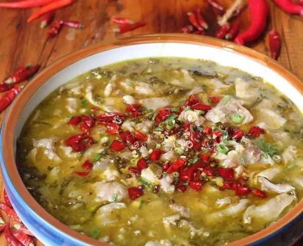 说明:自制酸菜酱是将泡辣椒、泡姜、泡菜、小米椒放入热油锅中爆香,然后放入搅拌机打碎而成。