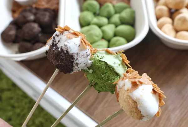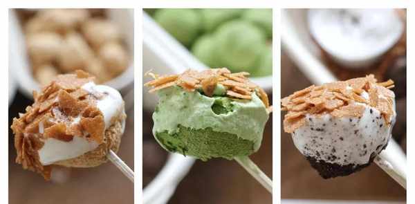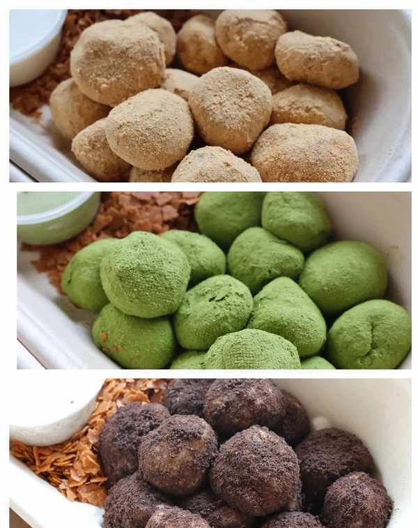 焗黄豆粉(原味)、奥利奥、肉松、椰子(裹椰丝和椰丝)、草莓(草莓粉、草莓酥)……