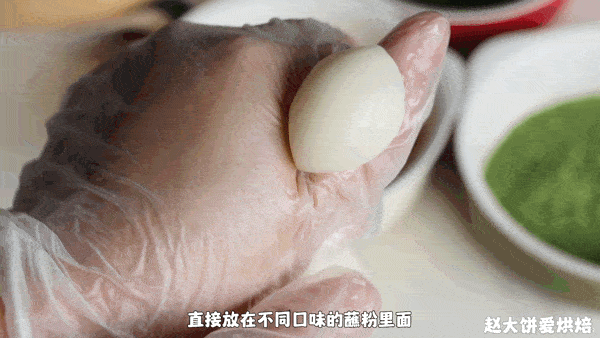 3、不热的时候可以戴上手套搓拉汤圆。这使它们更柔软、更柔韧(如果手套很粘,你可以在拉之前在手套上擦一些黄油)