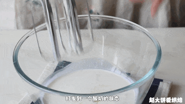 在淡奶油中加入糖、炼乳和海盐,然后使用电动打蛋器打至浓稠的酸奶形式。