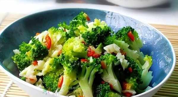 买来西兰花后,仔细洗净,切成小朵,放入锅中烫30秒后捞出,倒水待用,锅内留底油,加入适量蒜末和葱花炒香,