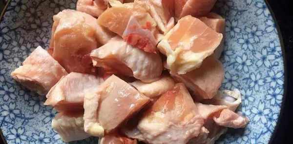 准备大蒜三个头,剥去外皮切成薄片,羊后腿切成钱币状的薄片,洋葱切成片,用手挤汁,将羊肉腌好,加入腌制好的鸡肉。加入香精,胡椒粉,少许玉米,拌匀,