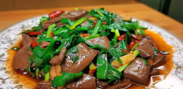 1、韭菜炒鸭血