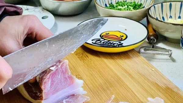 那么说到腊肉,今天要分享给大家:煎腊肉的小窍门。腊肉晒干后,肉质很硬,所以很多朋友在做菜的时候一般都会往里面加水,我觉得加水可以让腊肉变得柔软入味,也可以淡化腊肉中的咸味。一开始小编也有同感,后来咨询了湘西姐姐才知道,煎腊肉的时候一定要加水。这是禁忌!考虑到这一点,培根既不咸也不油腻。