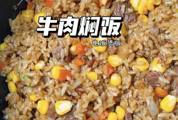2、大米洗净,加入适量的水(我一般都是用量水,不超过手背);锅内放适量油,下洋葱爆香,下入腌好的牛肉,炒至变色,关火;玉米,胡萝卜,酱油,蚝油,蚝油,糖,盐,拌匀。