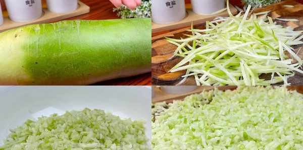 1、准备新鲜的萝卜,先将萝卜洗净,然后去皮。萝卜加工好后,用切成薄片的萝卜放在刨丝器上,然后将切好的萝卜切成萝卜丁,放入锅中,加少许盐腌制去除辣味