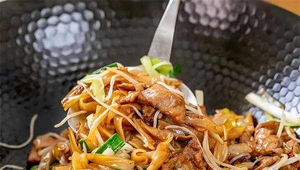 秘诀一:牛肉煎好后,倒掉所有的油,锅里留下一层薄薄的油,足够你炒蔬菜和米粉了。锅又热了,将米粉和绿豆芽倒入锅中快速翻炒。炸牛河不腻。