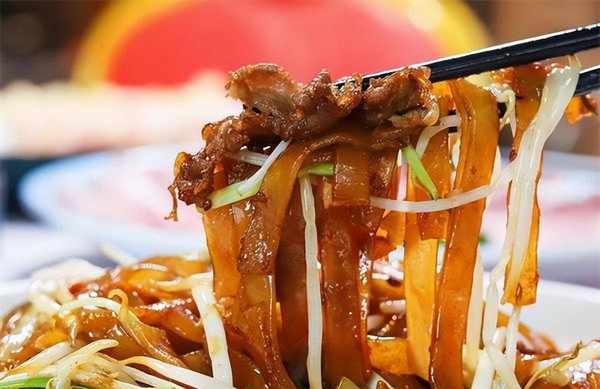 干炒,即急炒,不加汤。牛指的是牛肉,河粉是北方地区比较少见的一种米线。河粉全名沙河粉,源于广东省清远市沙河镇。沙河粉的原料只有大米。沙河镇出产的大米粘性较差,吃起来太硬,不能直接吃,所以加工成河粉。