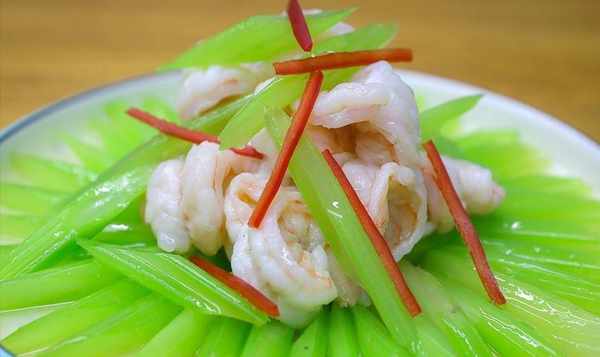 推荐做法:【葱油芹菜拌虾仁】