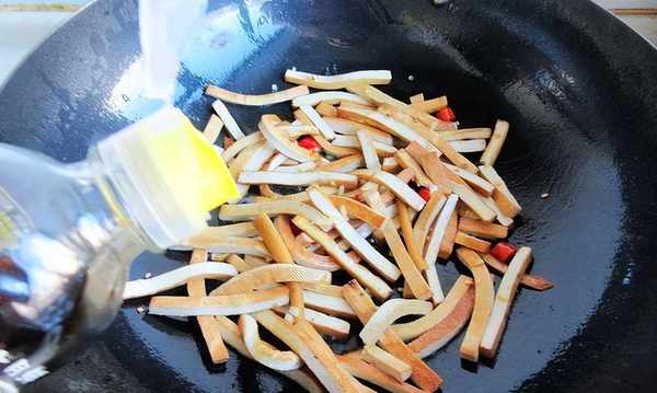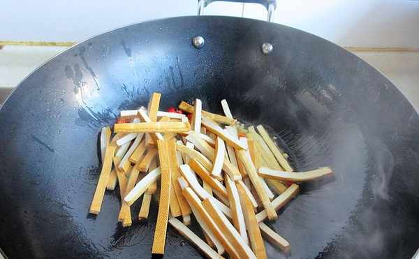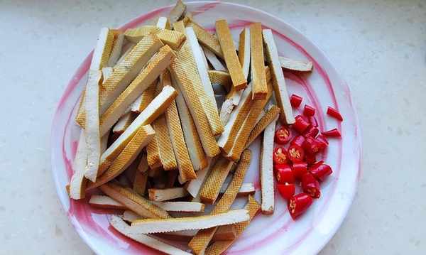 做法:1.香干切条,红洗净切条,姜切末