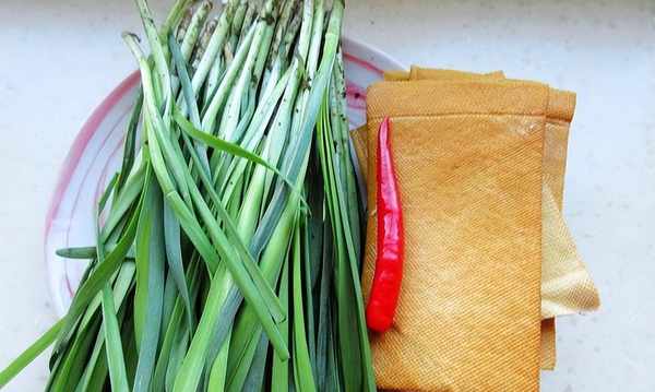 主料:韭菜、香干、红辣椒1个(可有可无)是为了提味和上色