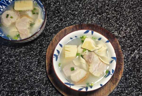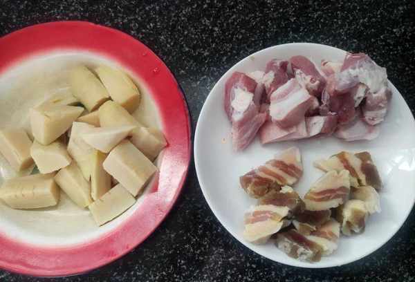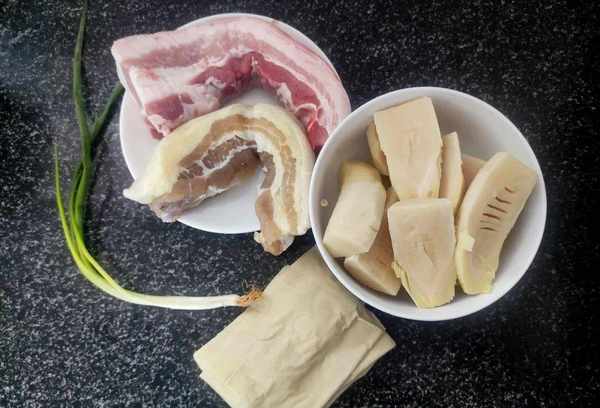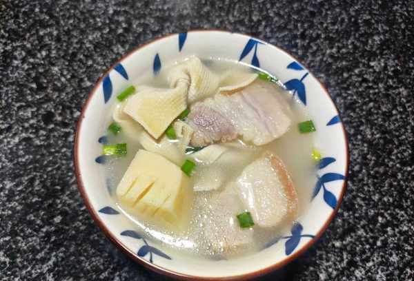 竹笋既吸油又挂鲜。培根和鲜肉混合在一起,味道鲜美。肉凉而油腻。
