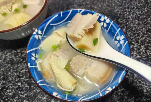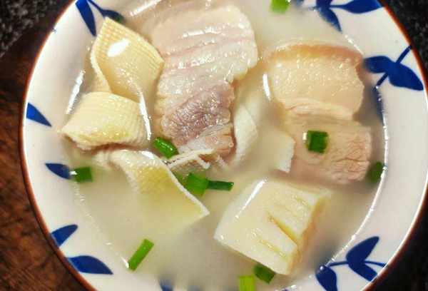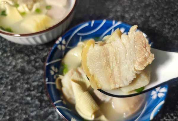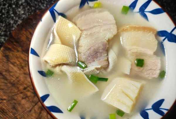 汤色纯白,清淡适中,鲜味浓郁,咸味中带鲜味。肉和鲜肉都含有油,而不是脂肪。