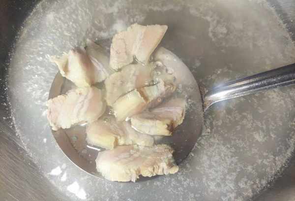 肉和鲜肉分开捞出,也可以焯水后取出切成小块。