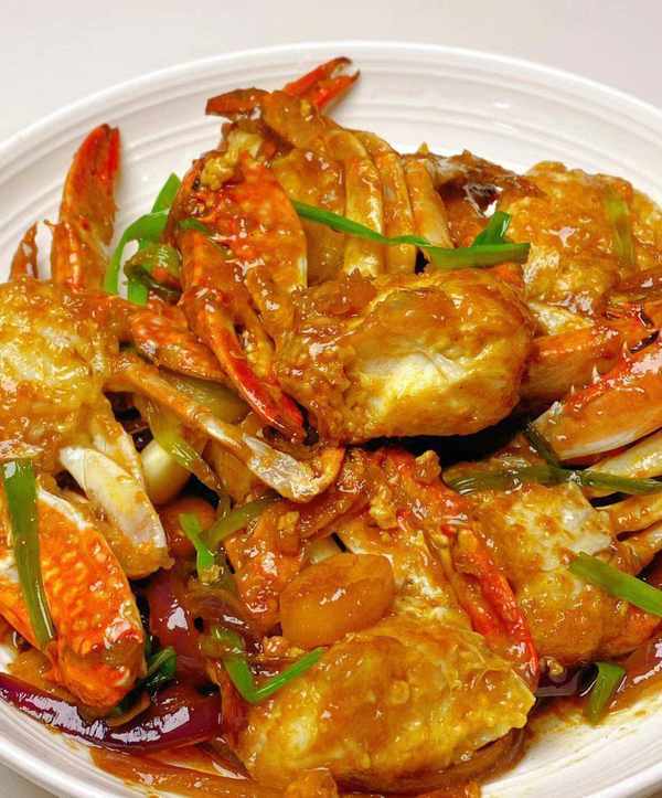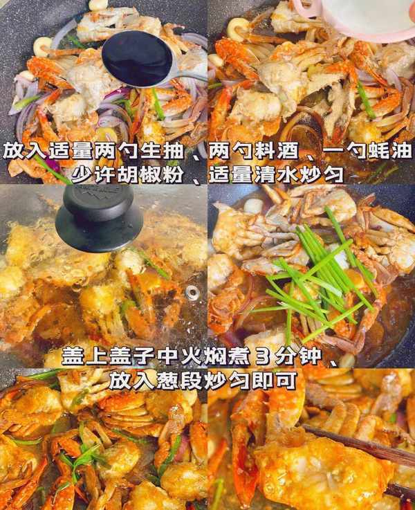 4.【麻辣梭子蟹】材料:梭子鱼、洋葱、大葱、蒜瓣、姜。