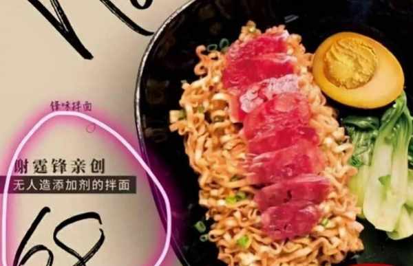有一位网友,在谢霆锋家的面馆,点了一碗拌面,面的名字就叫“锋味拌面”,菜品的卡片上,写着两行字,分别是“谢霆锋亲创”、“无人造添加剂的拌面”。这碗拌面的卖相很好看,拌面的形状,有点类似方便面,摆有从广东空运过来的广式腊肠切片,有鸡蛋和青菜,看起来荤素搭配很合理。