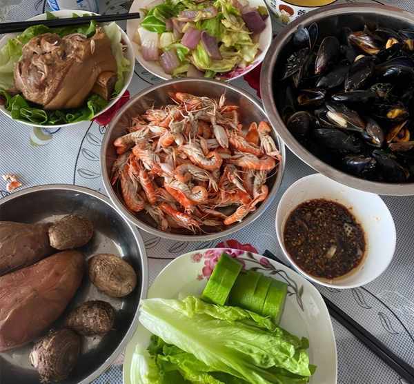 海虹是一种贝壳。山东的许多沿海城市都盛产海虹。它们又大又好吃。海虹价格便宜,但营养价值高,深受山东人喜爱。做法也很简单,蘸着酱汁煮着吃。这里的海虹太多了,吃不下。丁柔直接煮了一大锅,一个个都饱满香甜,咬一口滑进嘴里。太好吃了,我受不了了。