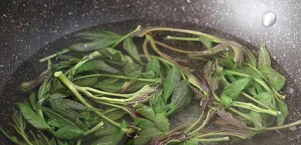 4。锅中留少许底油,先将香椿倒入锅中炒熟,加少许盐;