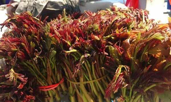 有一种叫“树上金”的鲜味,就是香椿,性平,有一种不容易接受的味道。可以清热解毒,健脾开胃,很适合这个季节。