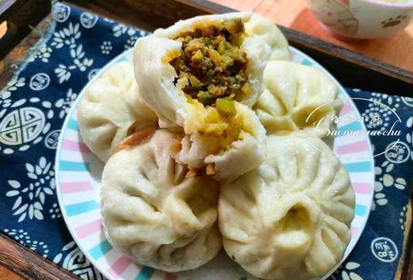 想想看,所以我这次才在萝卜馅包子里放了一点肉来提味。肉虽小,吃起来却没有萝卜的腥味。一口馅儿满满的,不油腻,我儿子一口气吃了5个。