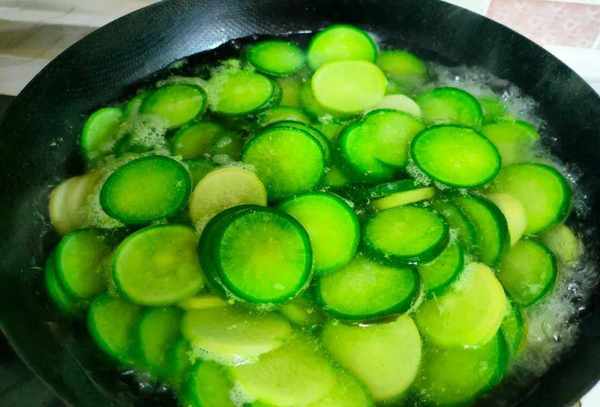4、萝卜切成稍厚的片,放入冷水锅中,不盖锅盖,然后大火煮熟,萝卜焯水至萝卜片呈翠绿色易捏。将它一次放入装有冷水的容器中萝卜去气的第二点是,萝卜切好后,要放入锅中过冷水。在这种不断加热沸腾的状态下,萝卜气其实是在不断蒸发的,所以不要盖上盖子,开锅关水即可。