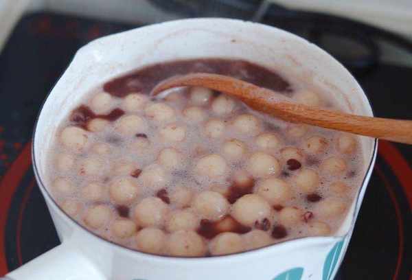 3、煮好后加入适量白糖,烧开后加入汤圆,继续煮至汤圆浮起即熟。