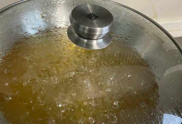 2、将880克冰糖和1000毫升水放入锅中,煮至冰糖融化,然后加入1500毫升白醋和3克盐,烧开,关火待凉。
