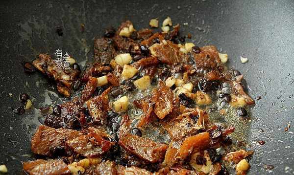 将2汤匙油直接倒入锅中,用勺子装在罐头里,加入一些豆豉。油烧热后下姜蒜爆香,然后将鲮鱼片放入锅中翻炒半分钟左右加少许盐、少许生抽、少许糖拌匀品尝。