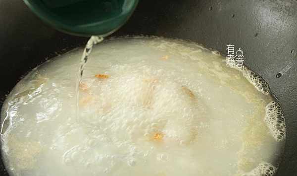 煮约1分钟,然后将咸蛋清倒入锅中,不要搅拌,让蛋清自然凝固,然后品尝是否足够咸,加少许盐调味。