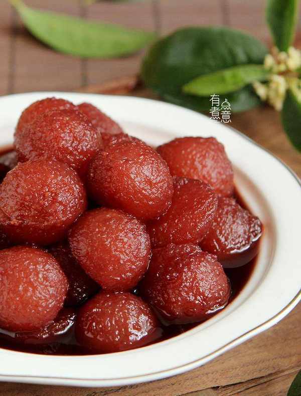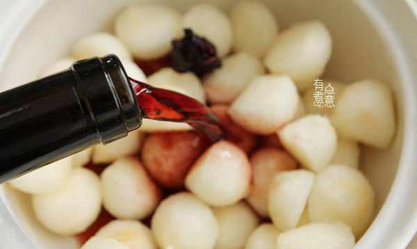 长时间浸泡梨果肉,让它渗透甜红酒,里面的果肉也会变成酒红色。红酒冷藏后的口感和口感也很好。