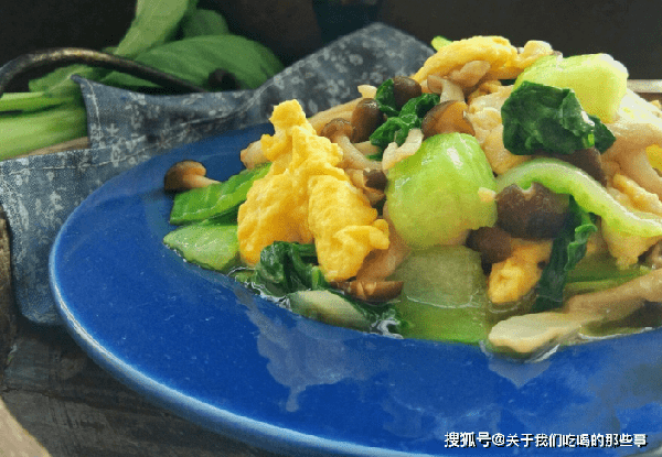 【油菜茶树菇炒鸡蛋】