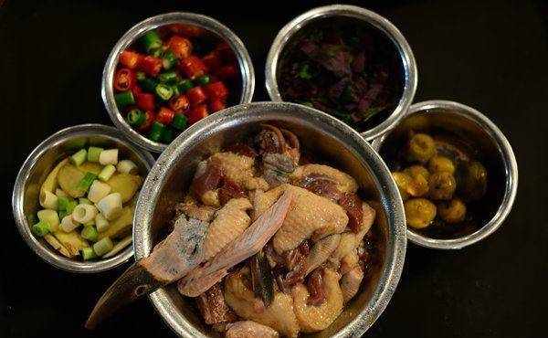 主料:土鸭750g(选老一点的为佳)辅料:脆梅子4颗,腌柠檬1个,啤酒250g,腐乳半块,老抽、生抽少许,蒜蓉、黄姜片、青红椒少许。