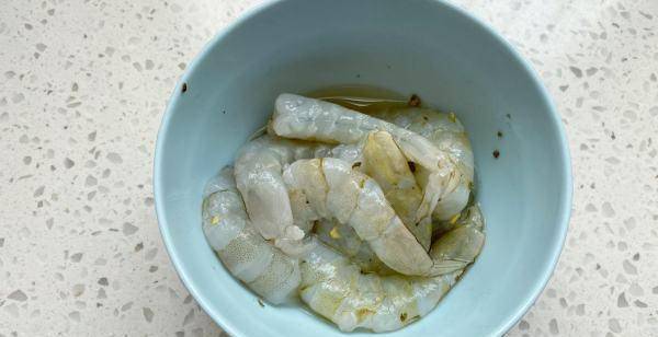第二步:虾仁加入1勺料酒,少许胡椒粉抓匀腌渍片刻。