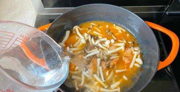 第七步 :锅里加入适量清水,喜欢喝汤的可以多加点,味道很鲜美。