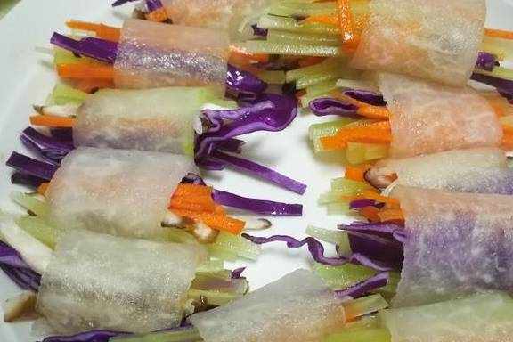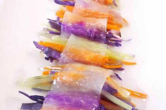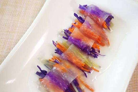 现在人们吃饭,要追求色形俱佳,而且还要营养丰富,冬瓜蔬菜卷——正是这样的一道菜。