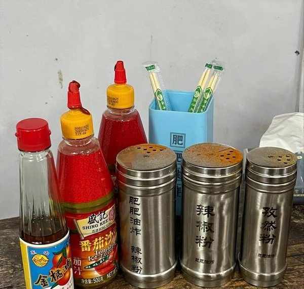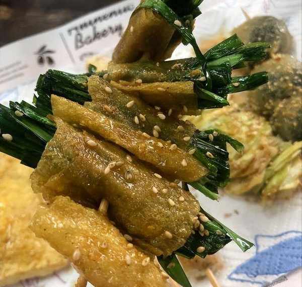 腐竹卷韭菜里面是一整条韭菜,吃起来很新鲜,外面的腐竹又香又脆,焦焦的特别香,配上韭菜趁热吃真的太好吃。包菜炸得很软,吃起来不会费劲,撒满芝麻特别香。除了老板在炸的时候会裹一圈秘制调料,每一桌都还配有孜然粉和辣椒粉,另外还有柑橘汁和蜜糖,可以自己看着调配,喜欢辣一点甜一点都可以。