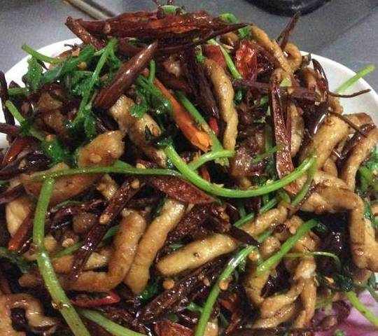 做法:热油将辣椒丝爆香备用。豆油7成熟,放入瘦肉丝,料酒,酱油,盐煸熟,盛盘。洒上辣椒丝,香菜,根据个人口味,加盐,味精,拌匀即食。此菜香辣,刺激,宜于下酒。