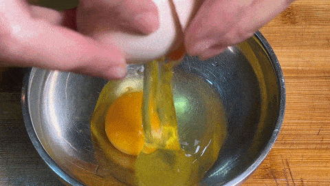 8. 在一个碗中打入两个鸡蛋,用筷子充分搅散