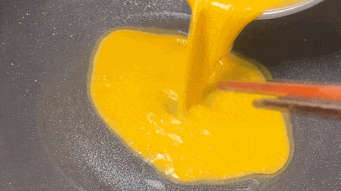 9. 起锅加入植物油,油热倒入鸡蛋液